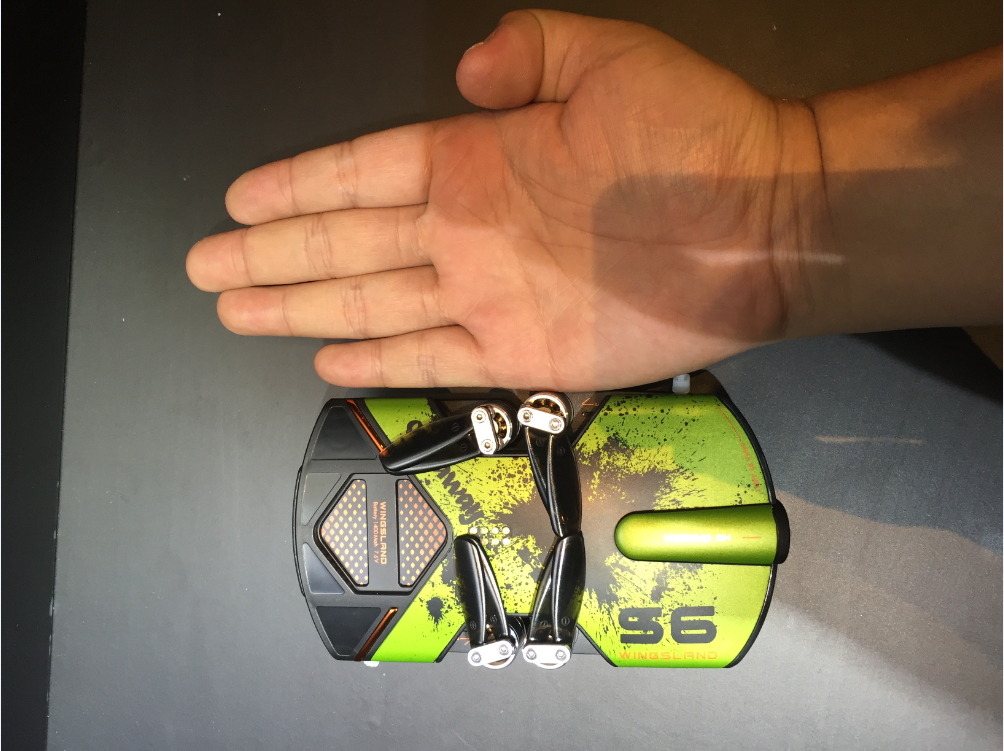 (图为曼塔S6发布会上观众的手掌与无人机对比照)