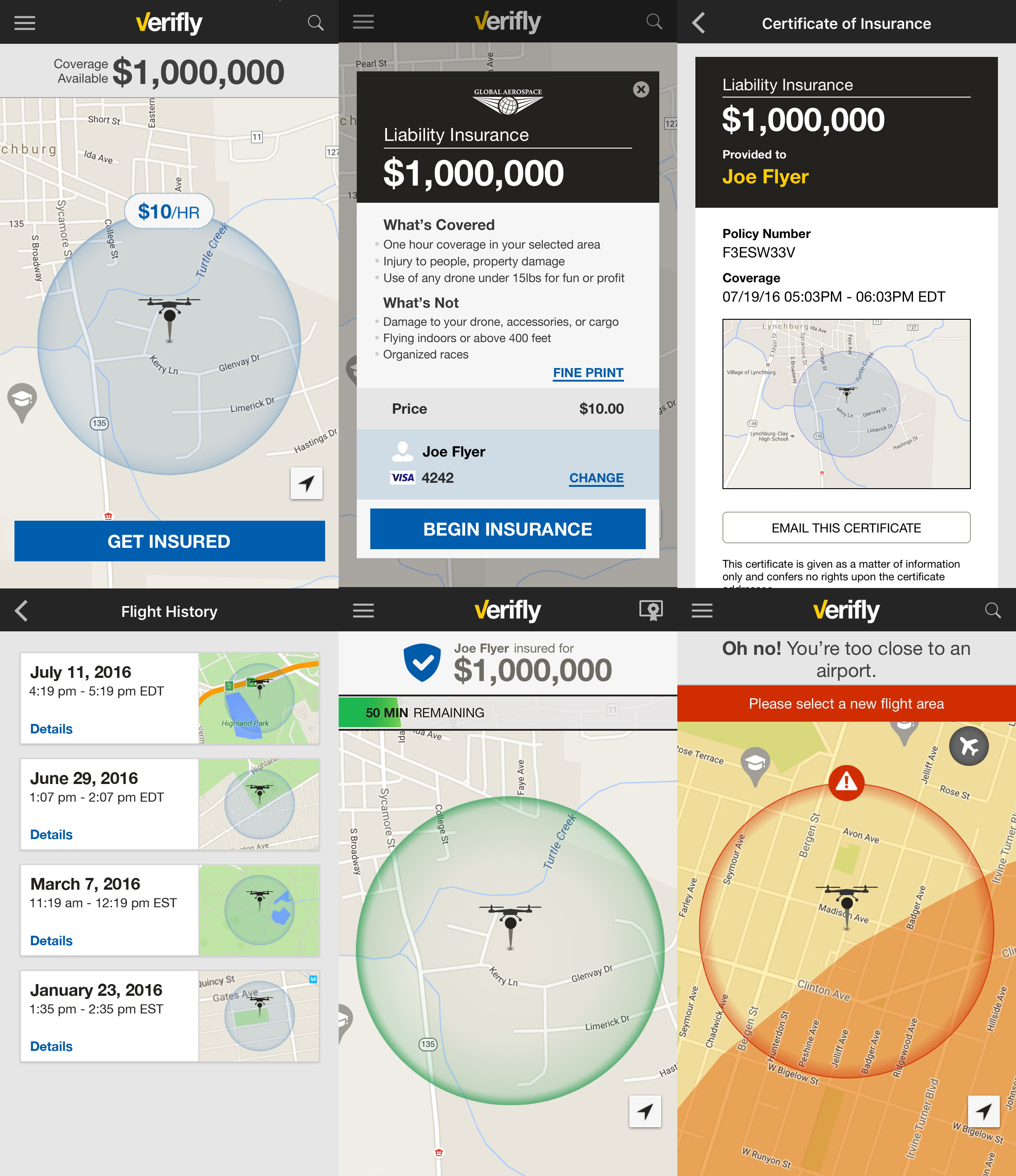 Verify,从2014年开始通过APP为用户提供无人机保险业务,此时正值美国无人机市场蓬勃发展时期。Verifly由Jay Bregman和Ryan Hertz联手创办,其中Jay Bregman为CEO。两个人的创业初衷是想要设计更加简单、更易使用、更具针对性的无人机保险。