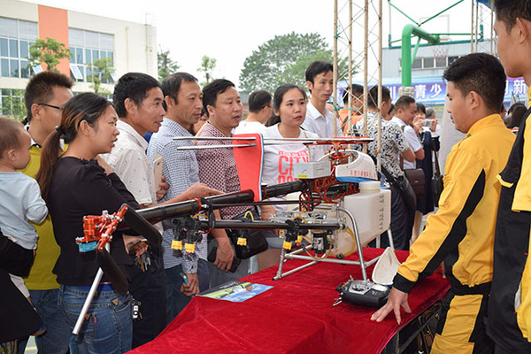 现场工作人员潘先生说,载药17KG的TY-787植保无人机具有高效省力、安全环保、节约成本、智能化程度高,符合现代农业生产的要求,真正解决了农业大户用工难及大型机械进田难的问题,为了加速植保无人机的推广,天鹰兄弟推出了无人机的免费培训班,指导大家更好的掌握无人机喷药技术,同时为了培养更多的技能人才,天鹰兄弟子公司也纷纷与当地职业技术学校校企合作、共同办学,加快推进现代农业化进程,在场的观众听了,纷纷点赞!
