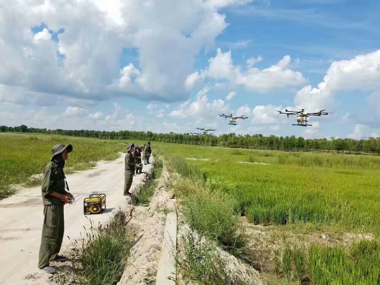 最终,一位资深的农资经销商中标了。但是, 即使对拥有农业植保无人机的他来说,3 天一万三千亩也是一个无法完成的任务。他找到了自己采购无人机的弘疆农业的总经理何毅,后者也是大疆在湖南的 5 家代理商之一。何毅召集了 7 架无人机,还向大疆农机湖南区域负责人高秀媛发出了求助。