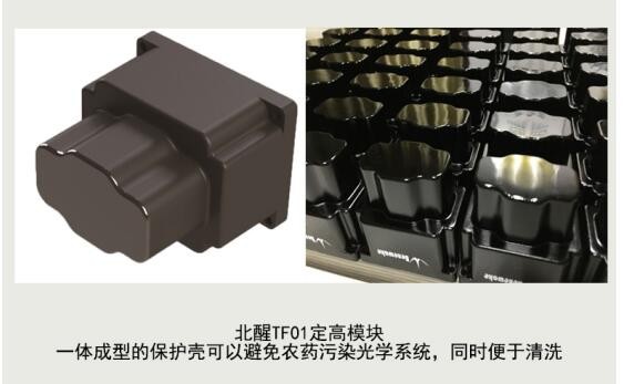 一直致力于“做世界上最好的机器人眼睛”的北醒光子为了解决植保无人机定高的痛点,基于TOF激光雷达的原理推出了地形跟随模块TF01。相比目前市面上的主流定高方案,TF01具有精度高,刷新频率快,抗室外强光、能够探测飞机前方地形等优势。北醒TF01能够以最高每秒500次的刷新频率实时探测植保机和农作物之间的距离,通过与飞控的配合,保证植保无人机与农作物保持设定的相对高度,误差保持在厘米级,同时不受温度、湿度、光线、电子、气流等干扰。该模块按照IP65级别防护设计,防尘防水抗腐蚀,最大探测高度10米,可适应不同农作物喷洒场景,避免由于地形变化或地势起伏造成重喷、漏喷或掉高,有效提高航空植保的作业效果。