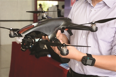 流线型的机身、配置四个旋翼、轻便小巧的构造……路演现场的这款无人机像极了一只雨林中的青蛙,也正因如此,他们把这架无人机命名为“奇蛙”无人机。