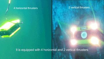 市面上的水下无人机,身上一般装有 4 个推进器,保证在水下的稳定拍摄。但CCROV 在传统 4 个推进器的基础上,再增加了 2 个。