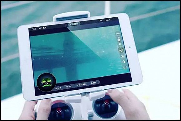 想要操控它在海底动起来,需要用上配套的手柄控制器。再搭配上专属的手机 APP,你就能一边享受小时候玩遥控飞机的爽感,一边在显示屏上实时潜游海底世界了。