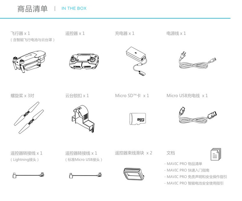 我们拿到的相当于售价6499元的标准版。包含飞机、遥控器、一块电池以及配套的充电器。