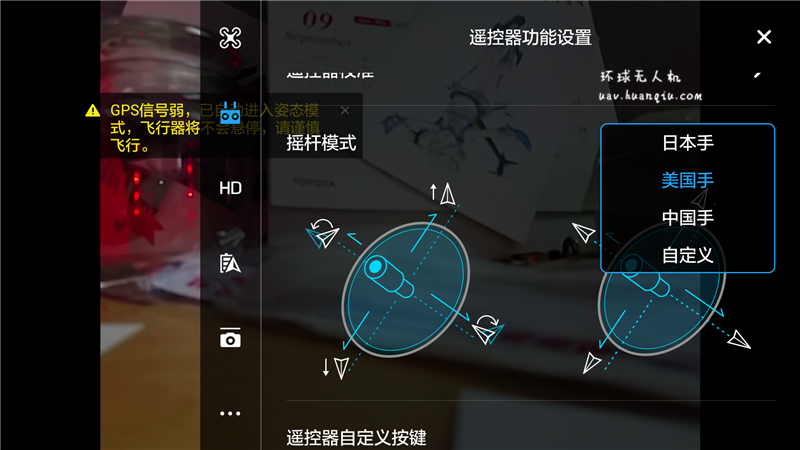 拿到样机后我们也简单的体验了一番,连接步骤还是非常简单的:开遥控器——开无人机电源——插入手机——同意USB调试——打开DJI GO软件。而且里边有非常详细的个性化设置,包括一键返航高度、距离限制、美国手/日本手等等。