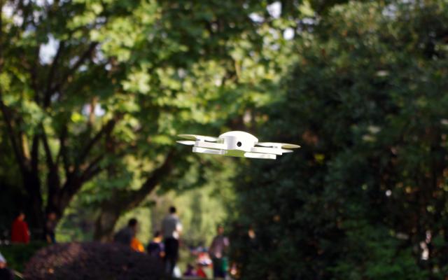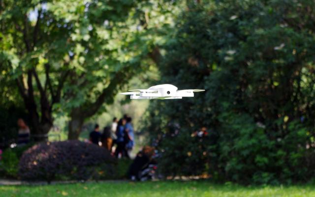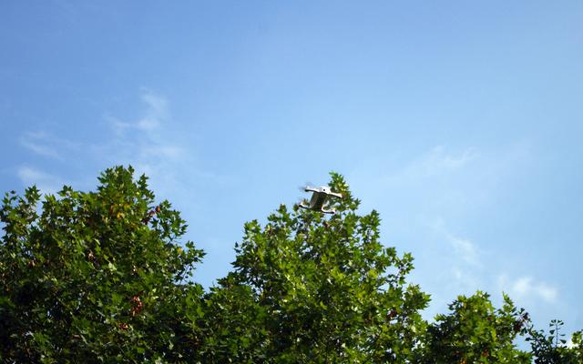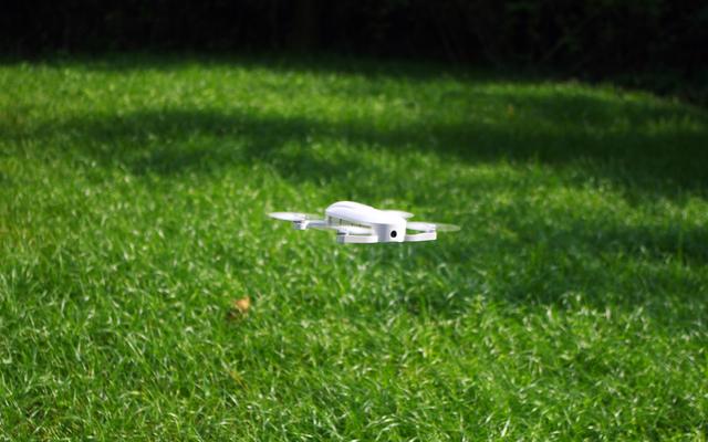 点击APP上面一键起飞按钮,飞机螺旋桨旋转几秒钟以后就成功起飞,心里那个激动哇~。起飞后如果没有操作飞机会悬停在一定的高度,DOBBY口袋无人机悬停效果相当棒,很稳定。
