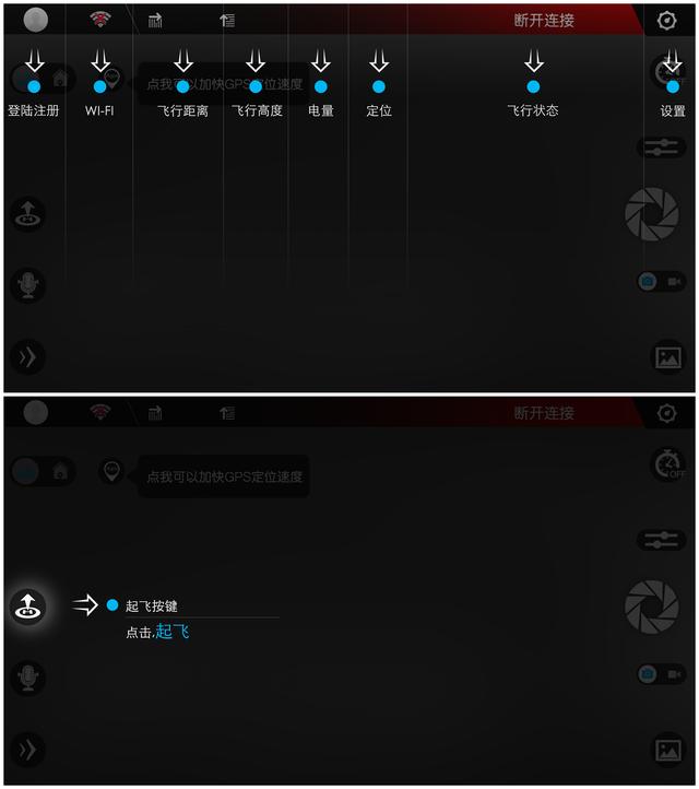 DOBBY口袋无人机的APP也很用心,打开之后会进行操作教学,每颗按钮的功能也都会提示一遍。而且无人机的操控方式也会有动画示意,其实小白也不用太担心不会使用。