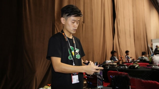 香港飞手邓肇明赛前自行组装了几个一模一样的无人机用以参赛,以防设备临场出现差错。他表示,飞手比赛时需要依靠信号传送的画面来判断操作,室内场地信号较差是一个挑战。