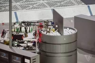 战利品是一大桶高尔夫球,它将起重臂一般的机械手伸入圆筒内,将“弹药”球吸入腹中。