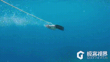 或许你会问为什么 Trident 要带着这么一根煞风景的「尾巴」,作为一款需要在水下灵活穿梭的机器人,带着一根牵引线帅气程度大打折扣。其实,囿于无线电波在水下糟糕的传输效果,这根牵引线承担起了传输大流量数据的重任。