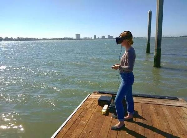 Trident 在水下拍摄到的画面能够实时传回水面,岸上的使用者如果佩戴上 VR 眼镜,就能通过双眼感受到水下鲜活生动的景象,与亲自下水别无二致。