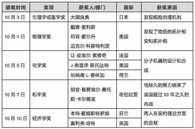 2016年诺贝尔奖揭晓仪式已经结束了,在此我们先回顾一下目前诺贝尔奖的获奖情况:
