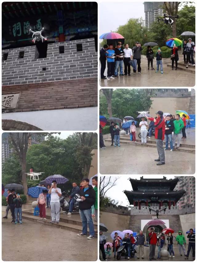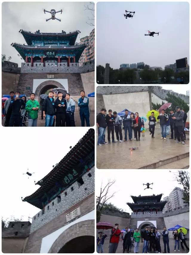 室内环节结束后,嘉宾们在专业飞手的带领下,来到了位于白浪河畔的潍坊最古老的古城门之一通济门的古城墙下,兴致勃勃地观看了由专业飞手操控进行的大疆无人机飞行表演和功能展示。虽然空中还飘着零星细雨,却丝毫没有影响众位嘉宾的心情和兴致。大疆小“悟”和精灵4先后出场,精彩纷呈,大家纷纷拿出相机记录下了每一个精彩的瞬间。为了让各位嘉宾能够“身临其境”地感受到“上帝的视角”,主办方还特地将与无人机配套的VR(虚拟现实)眼镜体验引入到了活动环节中,嘉宾只需戴上专用的VR眼镜,与无人机的遥控器连接上以后,即可实时地观看到由空中无人机实时传回的高清图像画面,其沉浸式的独特效果,犹如身临其境,让所有体验过的嘉宾都赞不绝口,纷纷表示:“感觉就像自己飞在空中看世界的感觉!”而大疆新品小“御”的雨中首秀则更是将展示环节推向了高潮!其灵动的身形和震撼的强大功能展示,深深地折服了现场的所有嘉宾!