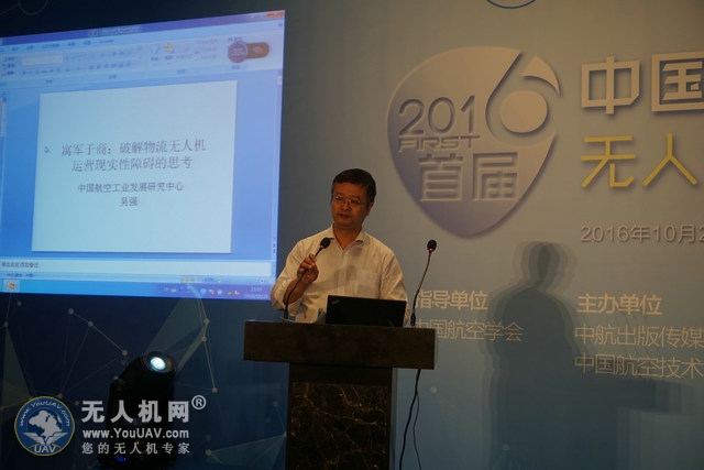 吴强副总师发表演讲《破解物流无人机运营现实性障碍的思考》,经济良性增长需要高效物流业的支持,而以亚马逊、京东等国内外电商企业引领的物流无人机项目可能会是未来物流领域的重要发展方向。但现有技术水平和国家空域安全等方面的现实增加了物流无人机发展的不确定性。提出“寓军于商”思路,将监控、后备军、技能保持和商业运营有机结合。