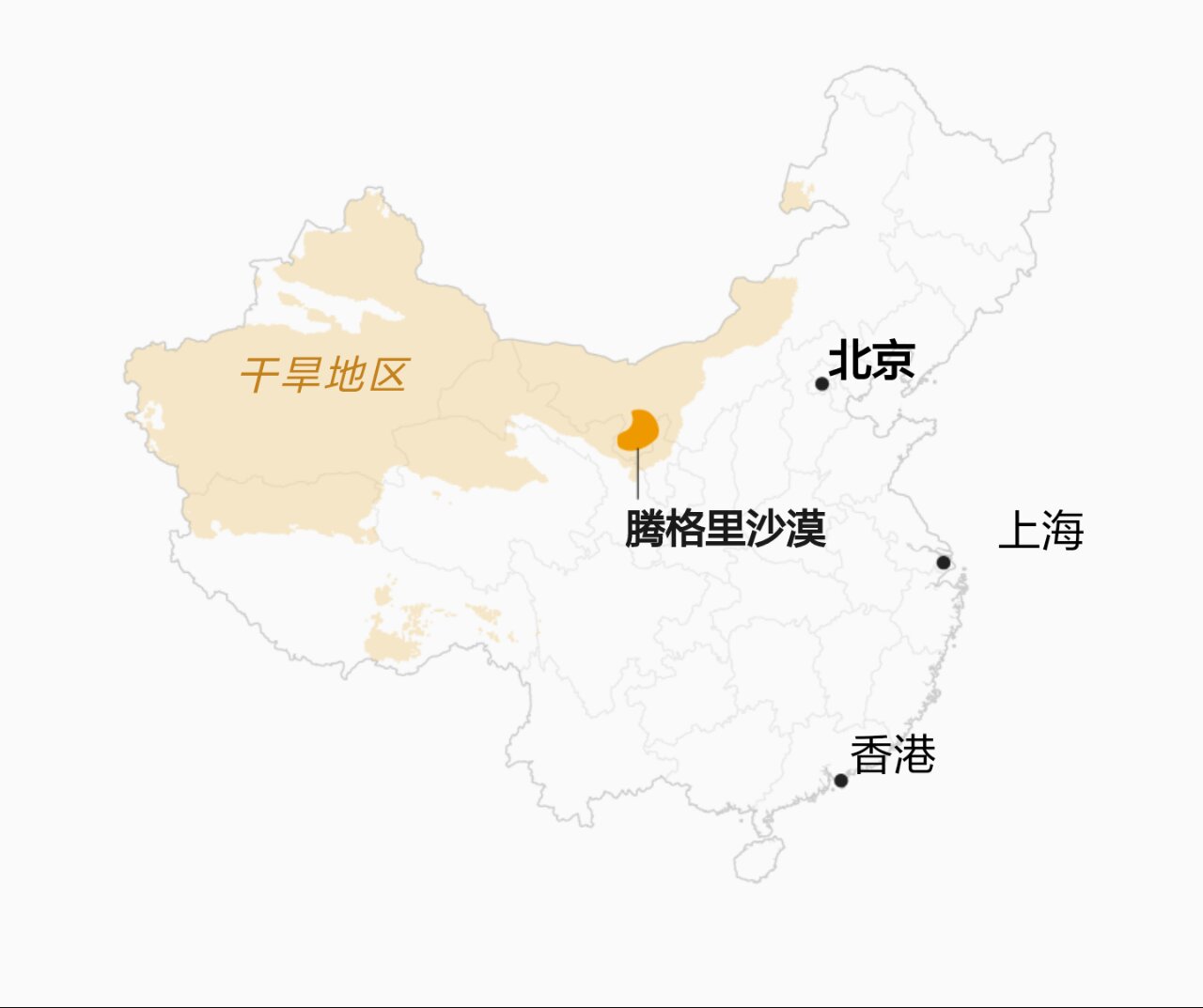 而腾格里沙漠距离中国的心脏,北京,也并不遥远。位于广袤戈壁滩的南缘,与不少大城市都相距不远。