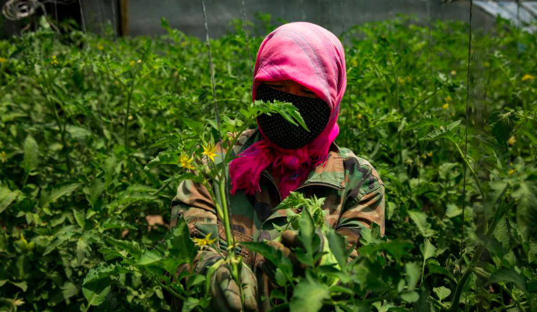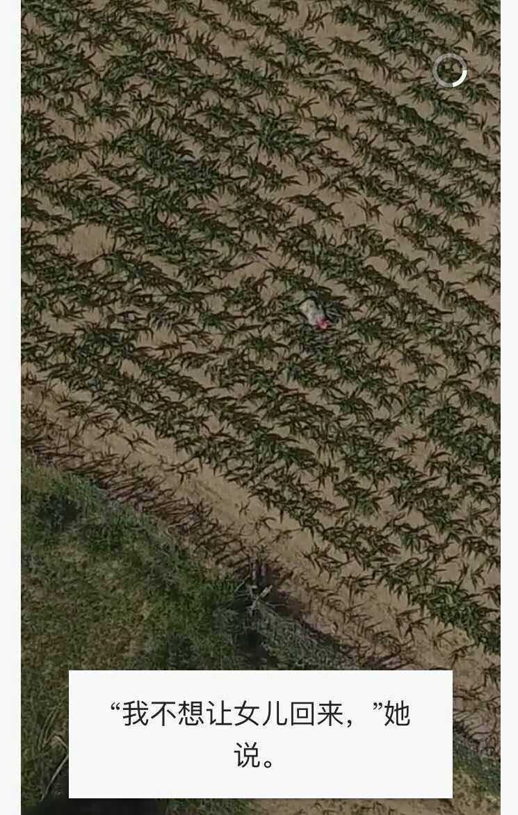 38岁的黄春梅种的是玉米和西红柿,有些种在大棚里。然而,从无人机拍摄下再来看这片“绿园”又是可怕的: