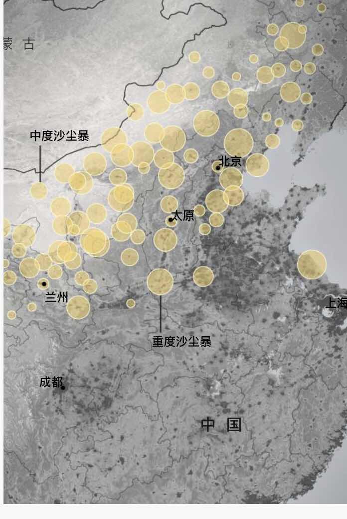 越来越多的沙尘来到了北京这样的大都市周边。这张沙尘图所反应的,让那些想向北京迁移的“生态移民”,都感到了害怕。