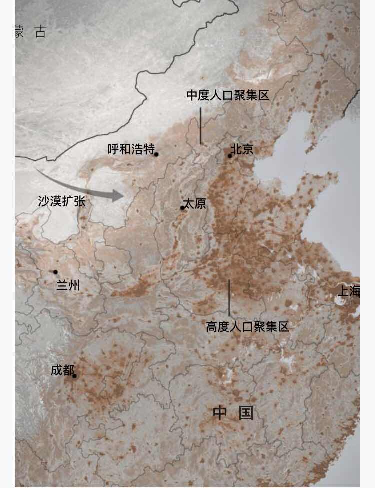 但在沙漠朝着城市挺进之际,中国一些人口稠密的地区也在朝着沙漠扩张。