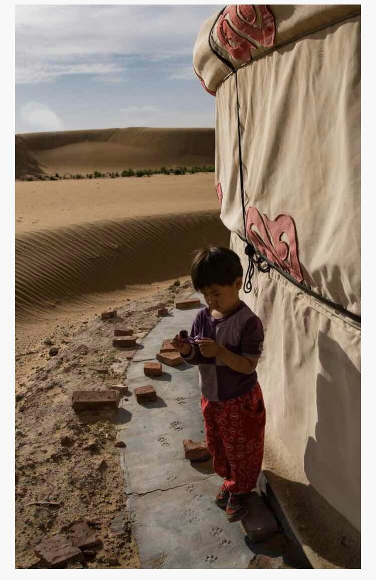 今年4岁的刘佳莉是腾格里沙漠上的居民。