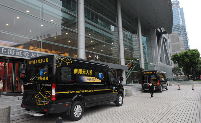 新华网新闻无人机抵达上市仪式现场