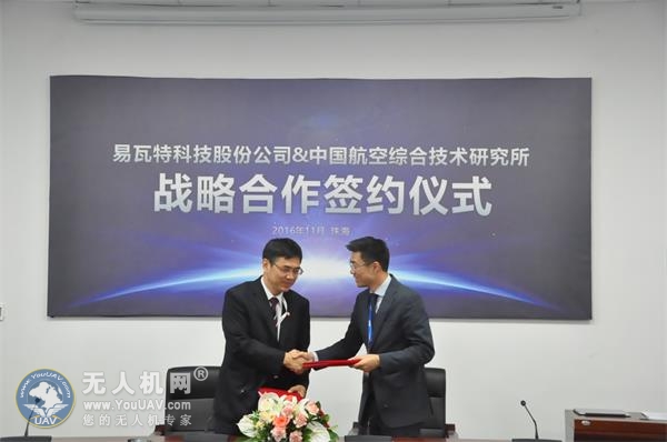 在发布会上,易瓦特宣布将与中国航空综合技术研究所开展更为紧密的合作。中航工业综合所所长赵波先生、易瓦特科技股份公司总裁赵国成先生现场成功签署了战略合作协议。此次战略合作协议的签订,将更进一步加深彼此业务的发展,未来,双方也将就无人机技术创新和行业标准建设等领域开展深入合作。