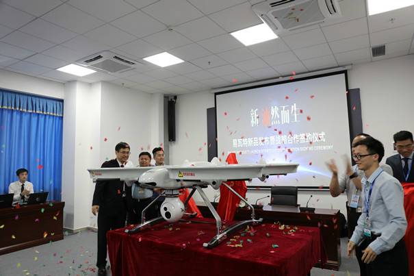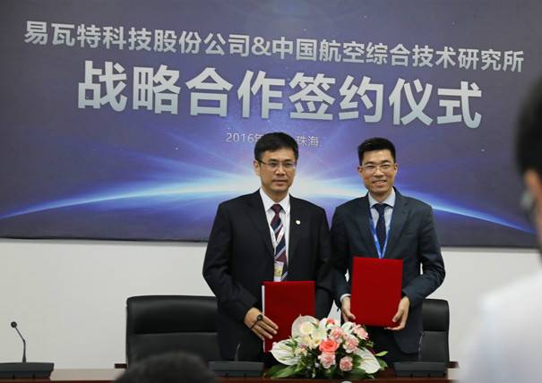 在发布会上,中航工业综合技术研究所(301所)所长赵波、易瓦特董事长赵国成现场签署了战略合作协议。此次战略合作协议的签订,将更进一步加深彼此业务的发展,未来,双方也将就无人机技术创新和行业标准建设等领域开展深入合作。