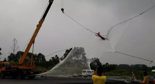 用拦阻网系统回收无人机是目前世界小型无人机较普遍采用的回收方式之一。拦阻网系统通常由拦阻网、能量吸收装置和自动引导设备组成。能量吸收装置与拦阻网相连,其作用是吸收无人机撞网的能量,免得无人机触网后在网上弹跳不停,以致损伤。自动引导设备一般是一部置于网后的电视摄像机,或是装在拦阻网架上的红外接收机,由它们及时向地面站报告无人机返航路线的偏差。