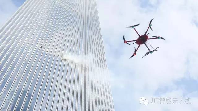 本次演习除了常规的消防力量之外,针对超高层建筑的特点,消防部门也配备了不少高科技装备,其中最大的亮点就是来自于深圳市智璟科技有限公司自主研发生产的JTT工业级无人机。