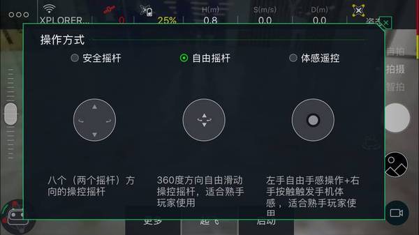 「空影 YING」用的是腾讯开发的 App,而这款 XPLORER Mini 主要是负责海外销售,用的是 XIRO 的 App。App 操作上手还是比较简单的,但还是要稍微熟悉一下设置,这比较主流的三种控制方式也都支持。