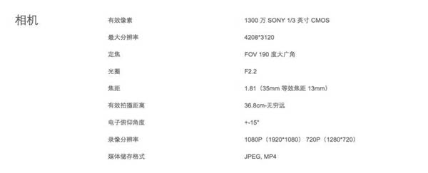 它虽然是固定镜头,但却拥有±15° 的电子俯仰角度,也就是能够调整镜头角度,但上下只有很少的 15°。原理很简单,这个镜头是 190 度的大广角镜头,可视面积非常宽,在最后记录拍摄图像的时候,通过数字方式只是截取了一部分区域,所以上下可调。而从用户角度看,就等于是在「上下移动摄像头」。