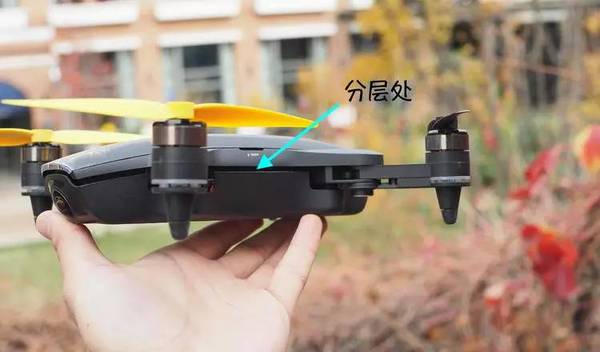 XPLORER Mini 采用的是不对称的折叠方式,折叠处通过弹簧按键来锁定,折起和展开都会「咔哒」一声锁住。也许折叠后并不需要常常拆装桨叶,所以并没有使用快拆。体积在 Mavic PRO 和 HoverCamera 之间,重量 431 克,背包里装 2、3 个还是没问题的。