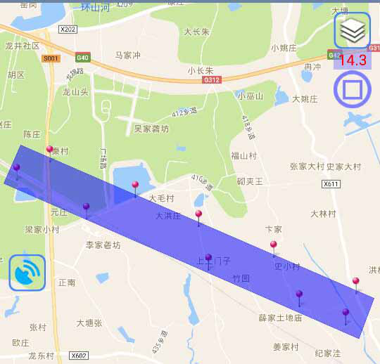 初勘主要任务是选线,做好路径方案的比选,择优选择路径。该测区长5KM长,600米左右宽,因为该区域的地形比较复杂,所以相对飞行高度设置为300米,地面分辨率是每像素8厘米,只飞了一个架次,共40分钟。