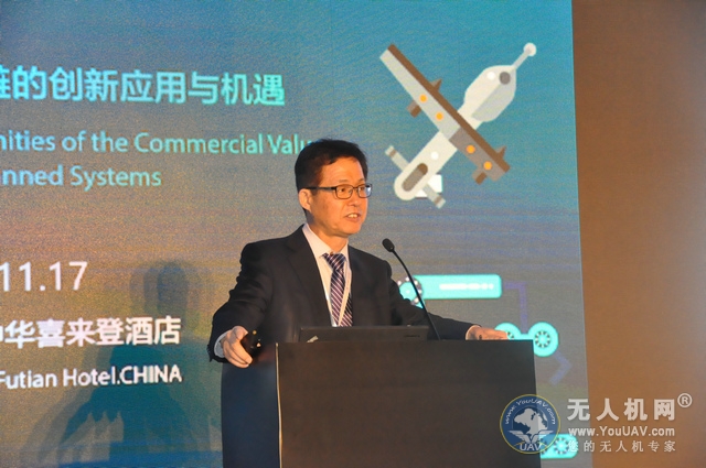 韩国智能无人系统研究会ISIUS主席、韩国无人系统协会副主席、韩国Konkuk大学航空信息教授尹光俊分享了韩国现阶段顶尖的无人机业务及其无人装备技术发展展望。介绍了韩国具有代表性的机型及企业,开放且充满激情的韩国市场也正在向更多元化形式商用无人机的方向发展,比如快速、长航时、垂直起降、全天候等等。
