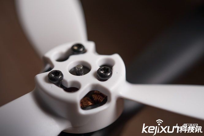 四个转子为外旋设计,初次安装时可以根据螺旋桨和转子上对应颜色贴纸来进行安装,正桨桨心有孔,反桨桨心无孔,非常便于识别。通过观察旋翼和螺旋桨卡口,之后进行拆卸、更换时也会更容易上手。