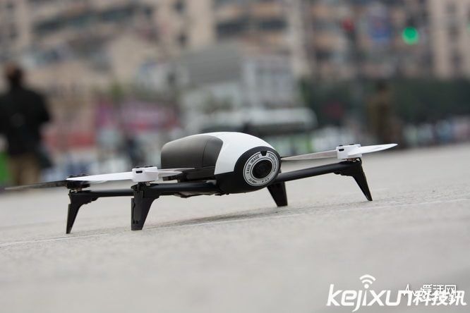 拿到Parrot BEBOP2的时候,第一感觉就是这不像是一台4000元以下价位的无人机(裸机价格3998元)。坚实的玻璃纤维增强型底座材质触摸起来有一种金属质感,带来了非常可靠的感觉,并且在保证了坚固性的同时还带来了较为轻巧的体重,整机重量为500g,可以比较轻松的携带。