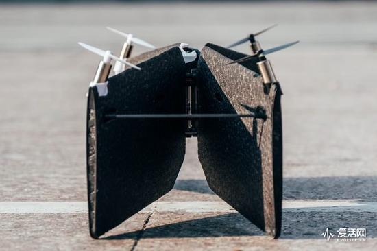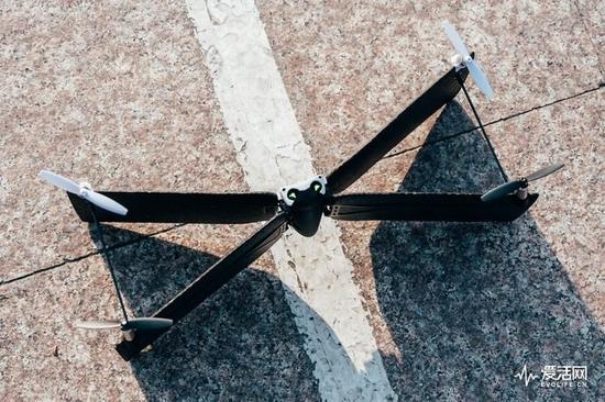 没错,你看到的这款带四轴的无人机确实是一架固定翼无人机,也就是通过机翼产生前进和飞行动力,举个例子,我们在机场看到的客机均为固定翼飞机。Parrot Swing的4个电机被分别固定在机翼末端。这样的设计意味着Parrot Swing起飞方式与传统四轴无人机并无二致,因此在放置Parrot Swing时候也与四轴无人机一样螺旋桨朝向正上方。