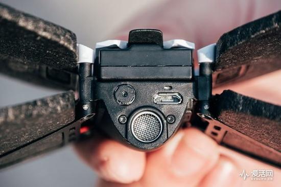 手握Parrot Swing你会发现,包含电池、螺旋桨在内仅有73g的机身重量让人感觉不像是拿着一个无人机。但事实上Parrot Swing包含了无人机的所有标准配置,包括三轴加速度、三轴陀螺仪和气压计组成的IMU惯性测量单元,以及用于降落的超声波传感器。