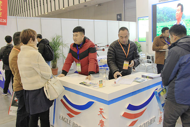 此外还有天鹰兄弟“明星”产品TY-787植保无人机参展,采用聚合物锂电池驱动,载药量可达17公斤,每次完成20至25亩地的喷药作业,如果作业一天可喷500亩,喷药效率较人工大大提升。