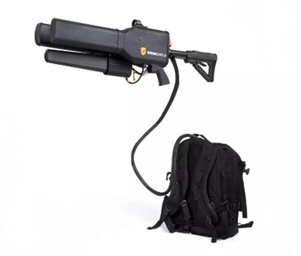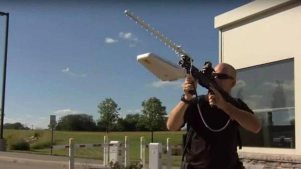 外形屌的没话说,射程也跟狙击枪差不多(2公里)可以直接干扰控制无人机降落或者用“高频无线电弹”直接把无人机搞残废!原理很简单就是无线电干扰。它配有专门的一个供电背包来提供足够的能量,就相当于是弹药了。