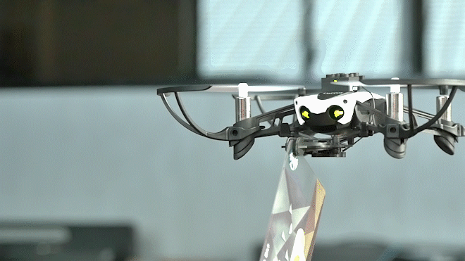 所以一般情况下,正确的Mambo机械爪钳使用姿势是先让飞机在人的旁边悬停,然后人再把要让它带的东西塞到它的爪钳里,并用FreeFlight mini app下达抓取指令,最后操控无人机飞到运输的目标地点,并把爪钳松开,放下携带的物体。