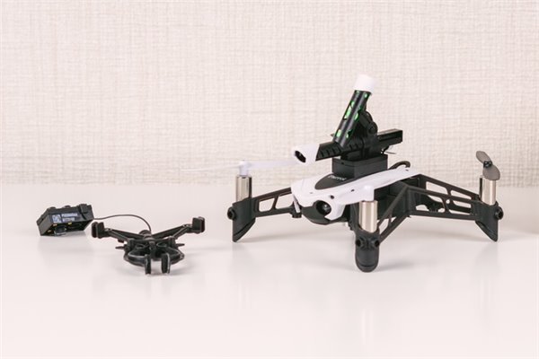 不过大疆上个月用Mavic Pro“御”往小型便携上走出了扎实的一步,而且价格也有所放松;现在轮到Parrot在形式上探索新领域了,如果说X字固定翼的Swing是一种在飞行姿态上的尝试,那带炮又带爪的Mambo就是对于无人机功能玩法上的创意发挥。当Mambo这架“战斗无人机”,遇上“王牌飞行员”,他们能碰撞出什么样的火花?