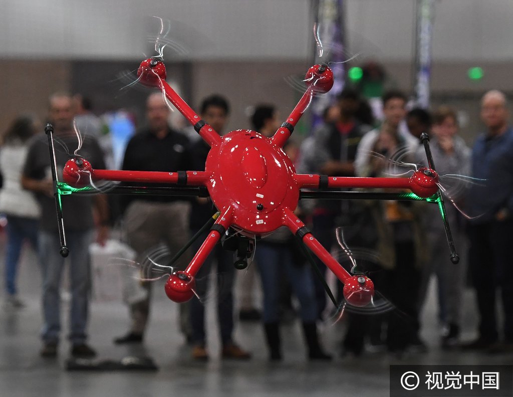 当地时间2016年12月10日,美国洛杉矶,国际无人机展览会举行,深圳一家公司制造的飞行器亮相。
