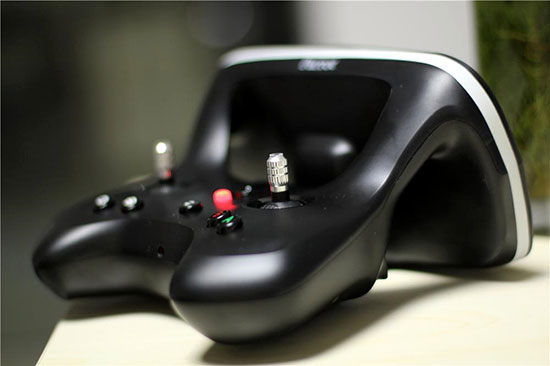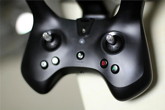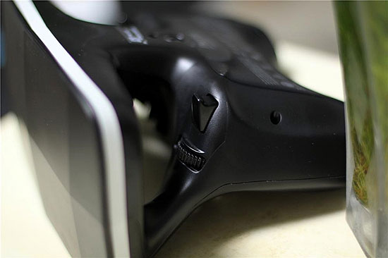 手柄上搭载的功能比较全面,比如升降、录像、拍照、一键返回、指示灯等该有的都有,按键布局人性化,适当的间隔距离降低了使用过程中的误触。此外,两根操作摇杆操控起来顺畅自如,金属材质的使用明显增加了操作时的触感,有意思的是摇杆并非使用圆润光滑的设计,而是带有一些纹路,说实话小编还真怕被这样的设计刺伤,不过实际操控的时候并没有明显的钉刺感,反而这两根经过特别设计的操作摇杆传递出了更加清晰的触感,这在使用Parrot Cockpitglasses第一人称视角眼镜时,对于确保操作有效性颇有益处,用户可以一下子识别出手指是否触碰到了摇杆。至于使用这样的摇杆设计是为了让人保持高度警觉这样的说法,当然不能完全排除部分用户有这样的需求,只是个人认为针对警觉性来设计摇杆,其实还是要结合无人机的最长续航时间来考虑。