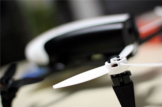无人机飞行时面对最大的问题就是刮风,要做到能在大风环境下稳定运行,那么螺旋桨和电机就需要精心设计了。Parrot BEBOP2配备的是外旋式无刷电机,螺旋桨半径达到7.5cm,理论上可以在6级大风中实现稳定飞行。这里需要说明的是,螺旋桨的安装相当简单,对应卡口置入即可,这样的设计很大程度上方便了用户对其进行拆装,收纳和携带也更为轻松简单。