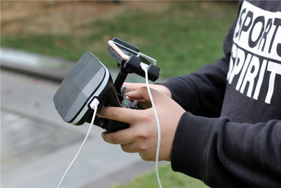 最后再来说说Parrot Cockpitglasses第一人称视角眼镜(FPV),这个其实说来与VR眼镜有些类似,用户需要将不大于5.5寸的手机插入其中,然后传输回来的画面会经过特殊处理,然后呈现在你眼前,其成像比较清晰,有90°的视野范围,小编并没有觉得有任何的眩晕感,沉浸效果还是不错的。