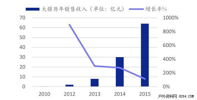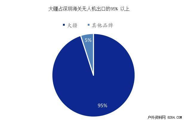 行业领先者大疆的近年来的快速扩张令人瞩目,其销售额从 2012 年的不足 2 亿元增长至 2015 年的 64 亿元,期间 CAGR 高达 217%, 它也是深圳无人机出口的主力,占出口总额的 95%以上。