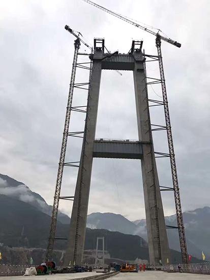 雅安至康定高速公路泸定大渡河特大桥,是一座建设在高海拔、高地震烈度带上的超大跨境钢桁梁悬索桥,全桥长1411米,主桥长1100米,采用钢混叠合桥道系,全桥合同造价超过10亿元。大桥康定岸为重力式锚碇、雅安岸为隧道式锚碇,属雅康高速公路全线“一桥一隧”重点控制性工程之一,被誉为“川藏第一桥”。建设过程中面临着“地形极其复杂、地质极其复杂、生态环境极其脆弱、气候条件极其恶劣、施工极其困难”五个“极其”的挑战。