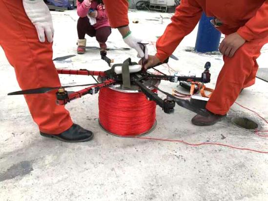 据介绍,无人机牵引先导索施工工艺,由于无人机是遥控指挥,操作简单,只需要3分钟就可以飞完单程,与船、直升机、火箭弹等工艺相比,大大节约施工成本,施工安全风险降至最低,且效率提高100倍以上。