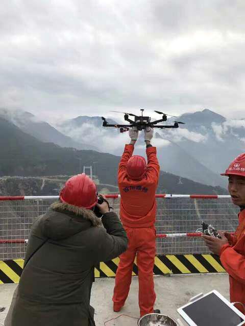 四川新闻网记者获悉,本次使用的无人机牵引先导索施工工艺是四川省内首次采用,国内第二次采用(第一次是云南龙江特大桥)。本次先导索施工,无人机空载5kg、有效荷载9.5kg,留空时间12-28分钟,最大飞行距离单控2000m,接力可以飞行4000m,泸定大渡河兴康特大桥无人机牵引先导索跨越大渡河施工就是采用接力飞行的方式进行。